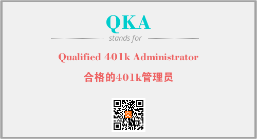 英文缩略词“QKA”经常作为“Qualified 401k Administrator”的英文缩写来使用,中文表示:“合格的401k管理员”。本文将详细介绍英文缩写词QKA所代表英文单词,其对应的中文拼音、详细解释以及在英语中的流行度。此外,还有关于缩略词QKA的分类、应用领域及相关应用示例等。