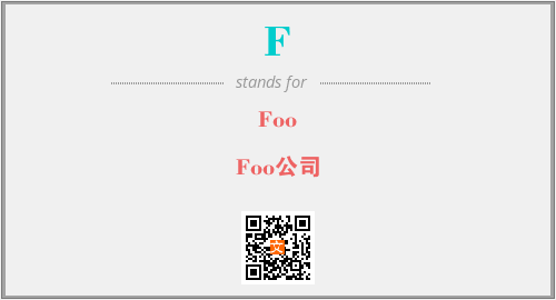 上述内容是“Foo”作为“F”的缩写,解释为“Foo公司”时的信息,以及英文缩略词F所代表的英文单词,其对应的中文拼音、详细解释以及在英文中的流行度和相关分类、应用领域及应用示例等。
