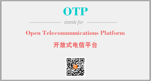上述内容是“Open Telecommunications Platform”作为“OTP”的缩写,解释为“开放式电信平台”时的信息,以及英文缩略词OTP所代表的英文单词,其对应的中文拼音、详细解释以及在英文中的流行度和相关分类、应用领域及应用示例等。