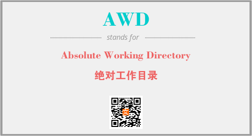 上述内容是“Absolute Working Directory”作为“AWD”的缩写,解释为“绝对工作目录”时的信息,以及英文缩略词AWD所代表的英文单词,其对应的中文拼音、详细解释以及在英文中的流行度和相关分类、应用领域及应用示例等。