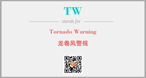 上述内容是“Tornado Warning”作为“TW”的缩写,解释为“龙卷风警报”时的信息,以及英文缩略词TW所代表的英文单词,其对应的中文拼音、详细解释以及在英文中的流行度和相关分类、应用领域及应用示例等。