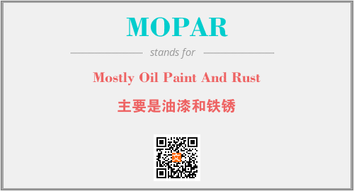 上述内容是“Mostly Oil Paint And Rust”作为“MOPAR”的缩写,解释为“主要是油漆和铁锈”时的信息,以及英文缩略词MOPAR所代表的英文单词,其对应的中文拼音、详细解释以及在英文中的流行度和相关分类、应用领域及应用示例等。
