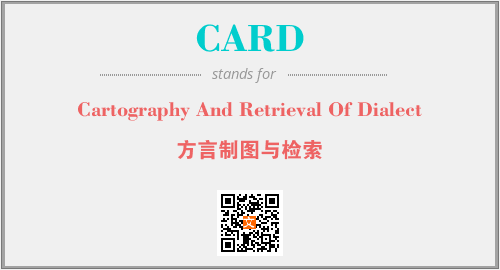上述内容是“Cartography And Retrieval Of Dialect”作为“CARD”的缩写,解释为“方言制图与检索”时的信息,以及英文缩略词CARD所代表的英文单词,其对应的中文拼音、详细解释以及在英文中的流行度和相关分类、应用领域及应用示例等。