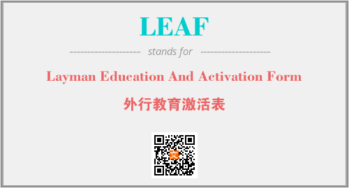 上述内容是“Layman Education And Activation Form”作为“LEAF”的缩写,解释为“外行教育激活表”时的信息,以及英文缩略词LEAF所代表的英文单词,其对应的中文拼音、详细解释以及在英文中的流行度和相关分类、应用领域及应用示例等。