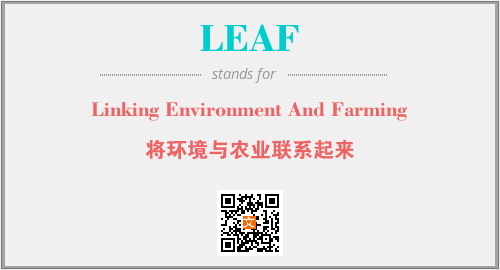 上述内容是“Linking Environment And Farming”作为“LEAF”的缩写,解释为“将环境与农业联系起来”时的信息,以及英文缩略词LEAF所代表的英文单词,其对应的中文拼音、详细解释以及在英文中的流行度和相关分类、应用领域及应用示例等。
