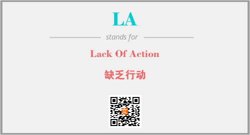 英文缩略词“LA”经常作为“Lack Of Action”的英文缩写来使用,中文表示:“缺乏行动”。本文将详细介绍英文缩写词LA所代表英文单词,其对应的中文拼音、详细解释以及在英语中的流行度。此外,还有关于缩略词LA的分类、应用领域及相关应用示例等。