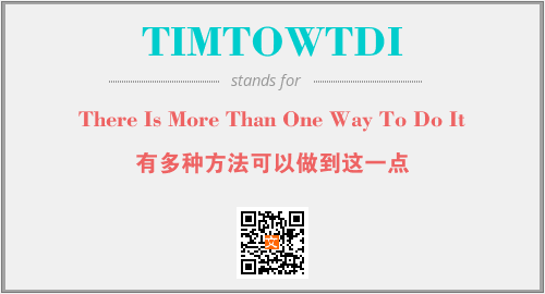 以上为There Is More Than One Way To Do It英文缩略词TIMTOWTDI的中文解释,以及该英文缩写在英语的流行度、分类和应用领域方面的信息。