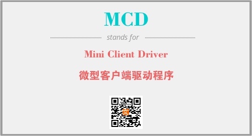 上述内容是“Mini Client Driver”作为“MCD”的缩写,解释为“微型客户端驱动程序”时的信息,以及英文缩略词MCD所代表的英文单词,其对应的中文拼音、详细解释以及在英文中的流行度和相关分类、应用领域及应用示例等。