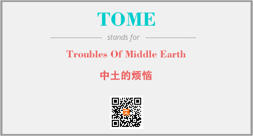 上述内容是“Troubles Of Middle Earth”作为“TOME”的缩写,解释为“中土的烦恼”时的信息,以及英文缩略词TOME所代表的英文单词,其对应的中文拼音、详细解释以及在英文中的流行度和相关分类、应用领域及应用示例等。