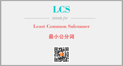 英文缩略词“LCS”经常作为“Least Common Subsumer”的英文缩写来使用,中文表示:“最小公分词”。本文将详细介绍英文缩写词LCS所代表英文单词,其对应的中文拼音、详细解释以及在英语中的流行度。此外,还有关于缩略词LCS的分类、应用领域及相关应用示例等。