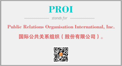 上述内容是“Public Relations Organisation International, Inc.”作为“PROI”的缩写,解释为“国际公共关系组织(股份有限公司)。”时的信息,以及英文缩略词PROI所代表的英文单词,其对应的中文拼音、详细解释以及在英文中的流行度和相关分类、应用领域及应用示例等。