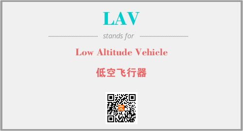 英文缩略词“LAV”经常作为“Low Altitude Vehicle”的英文缩写来使用,中文表示:“低空飞行器”。本文将详细介绍英文缩写词LAV所代表英文单词,其对应的中文拼音、详细解释以及在英语中的流行度。此外,还有关于缩略词LAV的分类、应用领域及相关应用示例等。