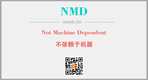 英文缩略词“NMD”经常作为“Not Machine Dependent”的英文缩写来使用,中文表示:“不依赖于机器”。本文将详细介绍英文缩写词NMD所代表英文单词,其对应的中文拼音、详细解释以及在英语中的流行度。此外,还有关于缩略词NMD的分类、应用领域及相关应用示例等。