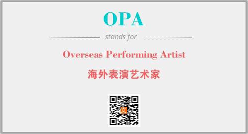以上为Overseas Performing Artist英文缩略词OPA的中文解释,以及该英文缩写在英语的流行度、分类和应用领域方面的信息。