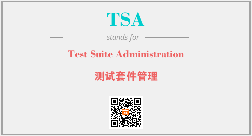 英文缩略词“TSA”经常作为“Test Suite Administration”的英文缩写来使用,中文表示:“测试套件管理”。本文将详细介绍英文缩写词TSA所代表英文单词,其对应的中文拼音、详细解释以及在英语中的流行度。此外,还有关于缩略词TSA的分类、应用领域及相关应用示例等。