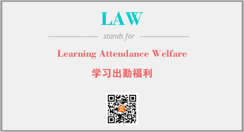 上述内容是“Learning Attendance Welfare”作为“LAW”的缩写,解释为“学习出勤福利”时的信息,以及英文缩略词LAW所代表的英文单词,其对应的中文拼音、详细解释以及在英文中的流行度和相关分类、应用领域及应用示例等。