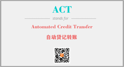 以上为Automated Credit Transfer英文缩略词ACT的中文解释,以及该英文缩写在英语的流行度、分类和应用领域方面的信息。