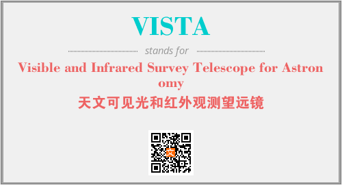 英文缩略词“VISTA”经常作为“Visible and Infrared Survey Telescope for Astronomy”的英文缩写来使用,中文表示:“天文可见光和红外观测望远镜”。本文将详细介绍英文缩写词VISTA所代表英文单词,其对应的中文拼音、详细解释以及在英语中的流行度。此外,还有关于缩略词VISTA的分类、应用领域及相关应用示例等。