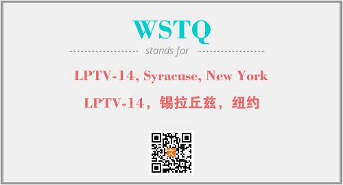 上述内容是“LPTV-14, Syracuse, New York”作为“WSTQ”的缩写,解释为“LPTV-14,锡拉丘兹,纽约”时的信息,以及英文缩略词WSTQ所代表的英文单词,其对应的中文拼音、详细解释以及在英文中的流行度和相关分类、应用领域及应用示例等。