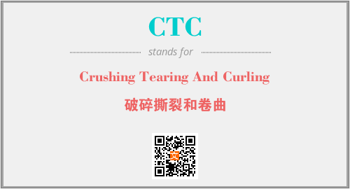 上述内容是“Crushing Tearing And Curling”作为“CTC”的缩写,解释为“破碎撕裂和卷曲”时的信息,以及英文缩略词CTC所代表的英文单词,其对应的中文拼音、详细解释以及在英文中的流行度和相关分类、应用领域及应用示例等。