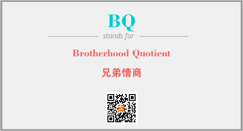 以上为Brotherhood Quotient英文缩略词BQ的中文解释,以及该英文缩写在英语的流行度、分类和应用领域方面的信息。