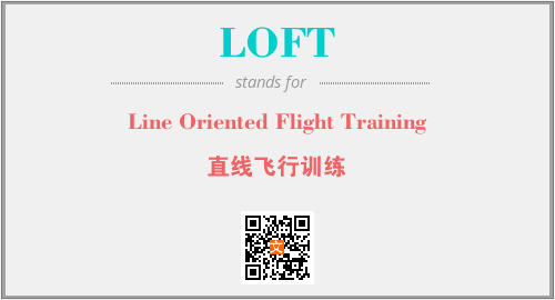 英文缩略词“LOFT”经常作为“Line Oriented Flight Training”的英文缩写来使用,中文表示:“直线飞行训练”。本文将详细介绍英文缩写词LOFT所代表英文单词,其对应的中文拼音、详细解释以及在英语中的流行度。此外,还有关于缩略词LOFT的分类、应用领域及相关应用示例等。