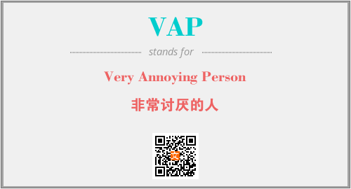 以上为Very Annoying Person英文缩略词VAP的中文解释,以及该英文缩写在英语的流行度、分类和应用领域方面的信息。