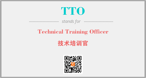 英文缩略词“TTO”经常作为“Technical Training Officer”的英文缩写来使用,中文表示:“技术培训官”。本文将详细介绍英文缩写词TTO所代表英文单词,其对应的中文拼音、详细解释以及在英语中的流行度。此外,还有关于缩略词TTO的分类、应用领域及相关应用示例等。