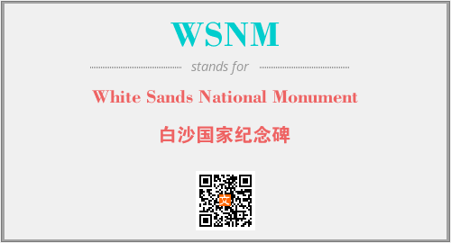 英文缩略词“WSNM”经常作为“White Sands National Monument”的英文缩写来使用,中文表示:“白沙国家纪念碑”。本文将详细介绍英文缩写词WSNM所代表英文单词,其对应的中文拼音、详细解释以及在英语中的流行度。此外,还有关于缩略词WSNM的分类、应用领域及相关应用示例等。