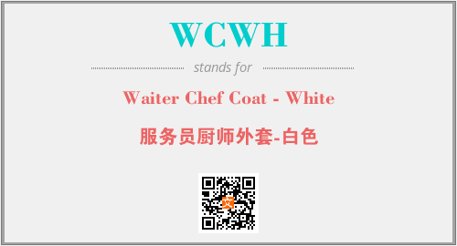 上述内容是“Waiter Chef Coat - White”作为“WCWH”的缩写,解释为“服务员厨师外套-白色”时的信息,以及英文缩略词WCWH所代表的英文单词,其对应的中文拼音、详细解释以及在英文中的流行度和相关分类、应用领域及应用示例等。