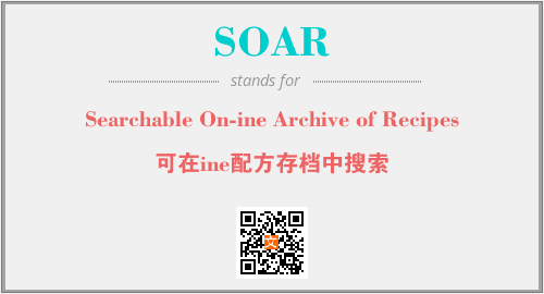 上述内容是“Searchable On-ine Archive of Recipes”作为“SOAR”的缩写,解释为“可在ine配方存档中搜索”时的信息,以及英文缩略词SOAR所代表的英文单词,其对应的中文拼音、详细解释以及在英文中的流行度和相关分类、应用领域及应用示例等。