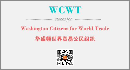 以上为Washington Citizens for World Trade英文缩略词WCWT的中文解释,以及该英文缩写在英语的流行度、分类和应用领域方面的信息。