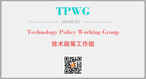 上述内容是“Technology Policy Working Group”作为“TPWG”的缩写,解释为“技术政策工作组”时的信息,以及英文缩略词TPWG所代表的英文单词,其对应的中文拼音、详细解释以及在英文中的流行度和相关分类、应用领域及应用示例等。