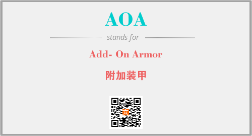 英文缩略词“AOA”经常作为“Add- On Armor”的英文缩写来使用,中文表示:“附加装甲”。本文将详细介绍英文缩写词AOA所代表英文单词,其对应的中文拼音、详细解释以及在英语中的流行度。此外,还有关于缩略词AOA的分类、应用领域及相关应用示例等。