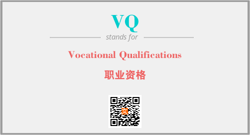 英文缩略词“VQ”经常作为“Vocational Qualifications”的英文缩写来使用,中文表示:“职业资格”。本文将详细介绍英文缩写词VQ所代表英文单词,其对应的中文拼音、详细解释以及在英语中的流行度。此外,还有关于缩略词VQ的分类、应用领域及相关应用示例等。