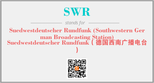以上为Suedwestdeutscher Rundfunk (Southwestern German Broadcasting Station)英文缩略词SWR的中文解释,以及该英文缩写在英语的流行度、分类和应用领域方面的信息。