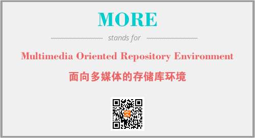 上述内容是“Multimedia Oriented Repository Environment”作为“MORE”的缩写,解释为“面向多媒体的存储库环境”时的信息,以及英文缩略词MORE所代表的英文单词,其对应的中文拼音、详细解释以及在英文中的流行度和相关分类、应用领域及应用示例等。