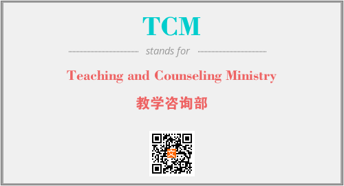 以上为Teaching and Counseling Ministry英文缩略词TCM的中文解释,以及该英文缩写在英语的流行度、分类和应用领域方面的信息。
