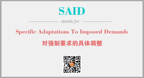 上述内容是“Specific Adaptations To Imposed Demands”作为“SAID”的缩写,解释为“对强制要求的具体调整”时的信息,以及英文缩略词SAID所代表的英文单词,其对应的中文拼音、详细解释以及在英文中的流行度和相关分类、应用领域及应用示例等。