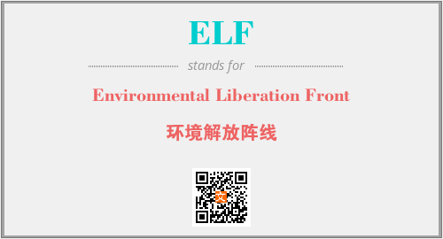 上述内容是“Environmental Liberation Front”作为“ELF”的缩写,解释为“环境解放阵线”时的信息,以及英文缩略词ELF所代表的英文单词,其对应的中文拼音、详细解释以及在英文中的流行度和相关分类、应用领域及应用示例等。