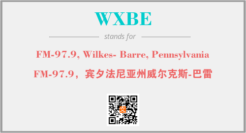 上述内容是“FM-97.9, Wilkes- Barre, Pennsylvania”作为“WXBE”的缩写,解释为“FM-97.9,宾夕法尼亚州威尔克斯-巴雷”时的信息,以及英文缩略词WXBE所代表的英文单词,其对应的中文拼音、详细解释以及在英文中的流行度和相关分类、应用领域及应用示例等。