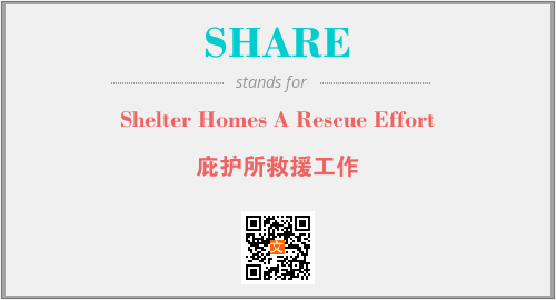 上述内容是“Shelter Homes A Rescue Effort”作为“SHARE”的缩写,解释为“庇护所救援工作”时的信息,以及英文缩略词SHARE所代表的英文单词,其对应的中文拼音、详细解释以及在英文中的流行度和相关分类、应用领域及应用示例等。