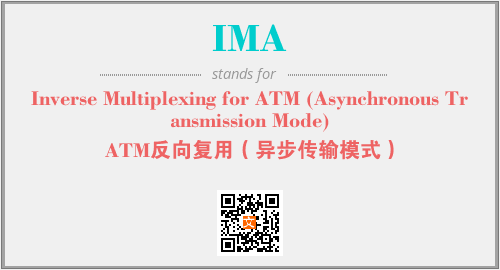 上述内容是“Inverse Multiplexing for ATM (Asynchronous Transmission Mode)”作为“IMA”的缩写,解释为“ATM反向复用(异步传输模式)”时的信息,以及英文缩略词IMA所代表的英文单词,其对应的中文拼音、详细解释以及在英文中的流行度和相关分类、应用领域及应用示例等。