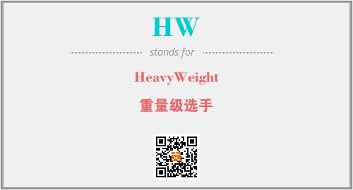 英文缩略词“HW”经常作为“HeavyWeight”的英文缩写来使用,中文表示:“重量级选手”。本文将详细介绍英文缩写词HW所代表英文单词,其对应的中文拼音、详细解释以及在英语中的流行度。此外,还有关于缩略词HW的分类、应用领域及相关应用示例等。