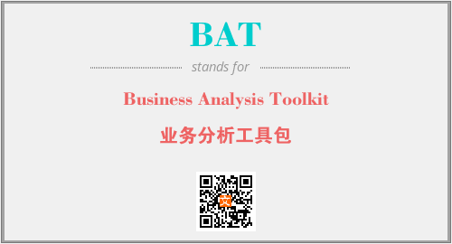 英文缩略词“BAT”经常作为“Business Analysis Toolkit”的英文缩写来使用,中文表示:“业务分析工具包”。本文将详细介绍英文缩写词BAT所代表英文单词,其对应的中文拼音、详细解释以及在英语中的流行度。此外,还有关于缩略词BAT的分类、应用领域及相关应用示例等。