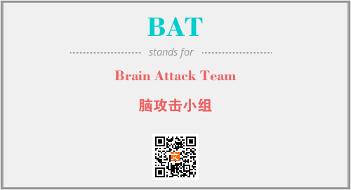 以上为Brain Attack Team英文缩略词BAT的中文解释,以及该英文缩写在英语的流行度、分类和应用领域方面的信息。