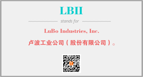 上述内容是“LuBo Industries, Inc.”作为“LBII”的缩写,解释为“卢波工业公司(股份有限公司)。”时的信息,以及英文缩略词LBII所代表的英文单词,其对应的中文拼音、详细解释以及在英文中的流行度和相关分类、应用领域及应用示例等。