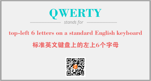 上述内容是“top-left 6 letters on a standard English keyboard”作为“QWERTY”的缩写,解释为“标准英文键盘上的左上6个字母”时的信息,以及英文缩略词QWERTY所代表的英文单词,其对应的中文拼音、详细解释以及在英文中的流行度和相关分类、应用领域及应用示例等。