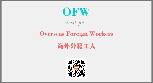 英文缩略词“OFW”经常作为“Overseas Foreign Workers”的英文缩写来使用,中文表示:“海外外籍工人”。本文将详细介绍英文缩写词OFW所代表英文单词,其对应的中文拼音、详细解释以及在英语中的流行度。此外,还有关于缩略词OFW的分类、应用领域及相关应用示例等。