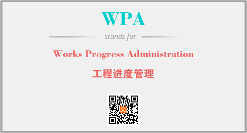 英文缩略词“WPA”经常作为“Works Progress Administration”的英文缩写来使用,中文表示:“工程进度管理”。本文将详细介绍英文缩写词WPA所代表英文单词,其对应的中文拼音、详细解释以及在英语中的流行度。此外,还有关于缩略词WPA的分类、应用领域及相关应用示例等。